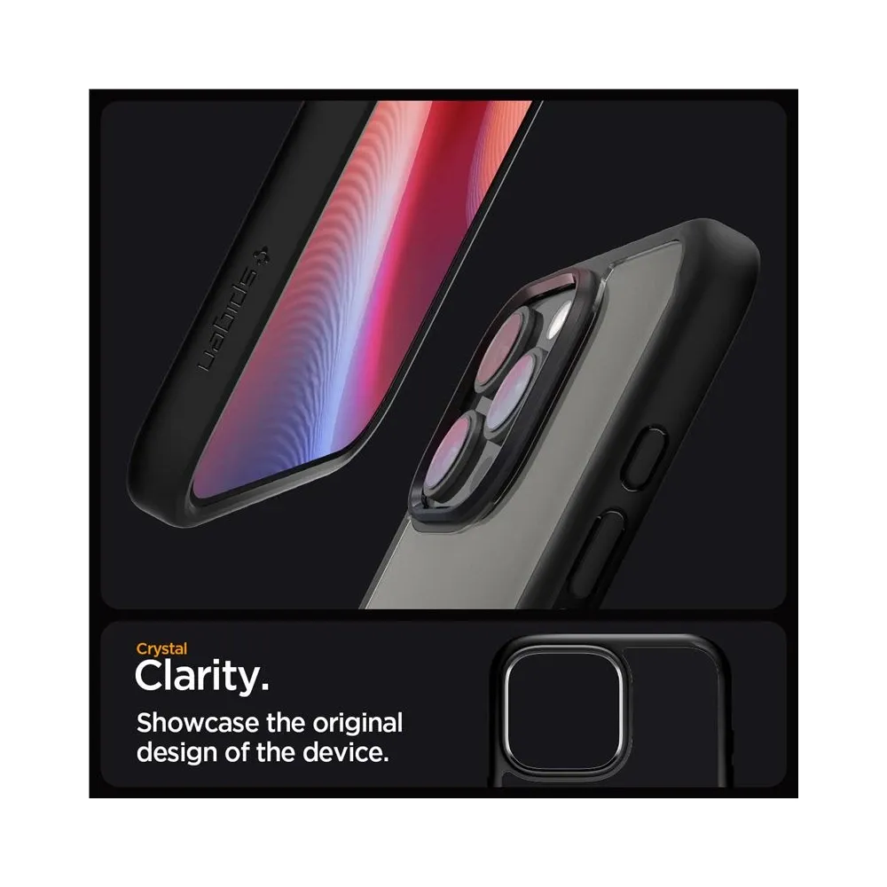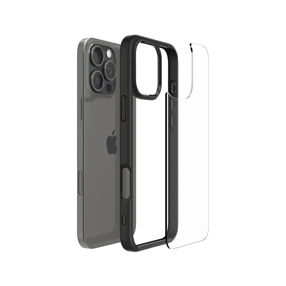 Minimalistický, odolný a dokonale padnúci - Spigen Ultra Hybrid Matte Black pre iPhone 16 Pro Max kombinuje číry zadný panel s matným čiernym rámom. Chráni tvoj iPhone pri pádoch aj každodennom používaní, pritom zachováva jeho pôvodný design a podporuje bezdrôtové nabíjanie.